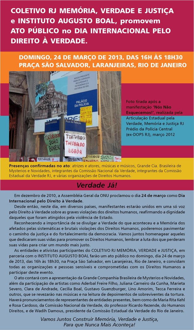 ATO PUBLICO DIA INTERNACIONAL DA VERDADE!